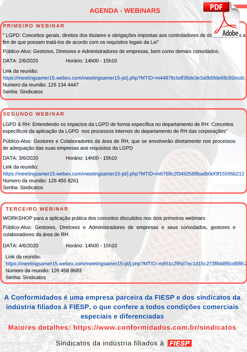 Convite dos Webnars que estão programados para a próxima semana, dias 02, 03 e 04, já agendados com a CONFORMIDADOS.